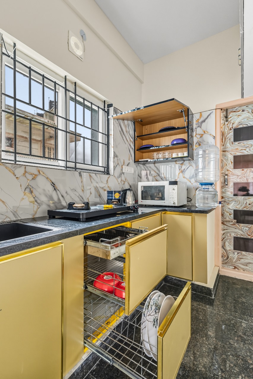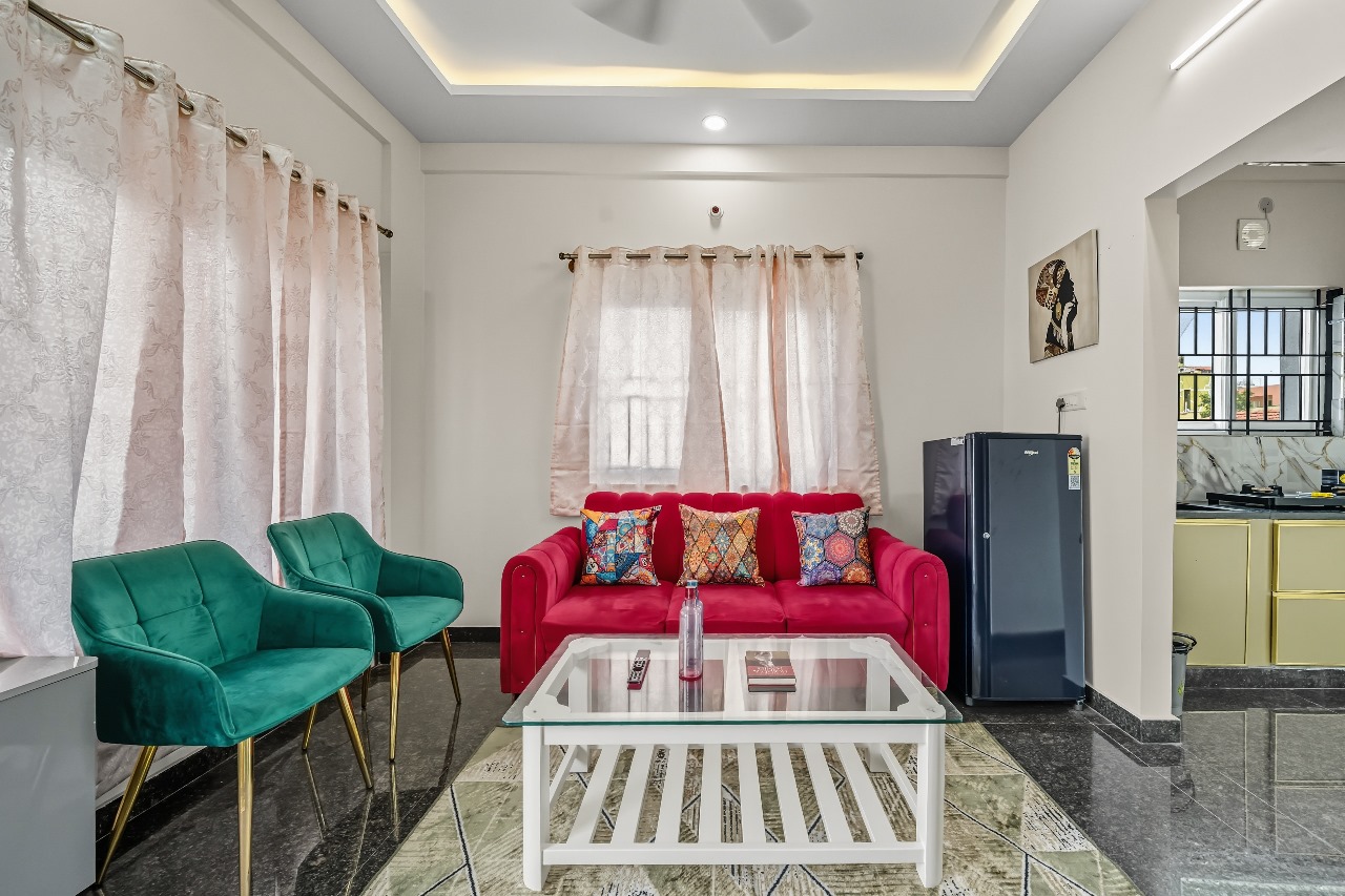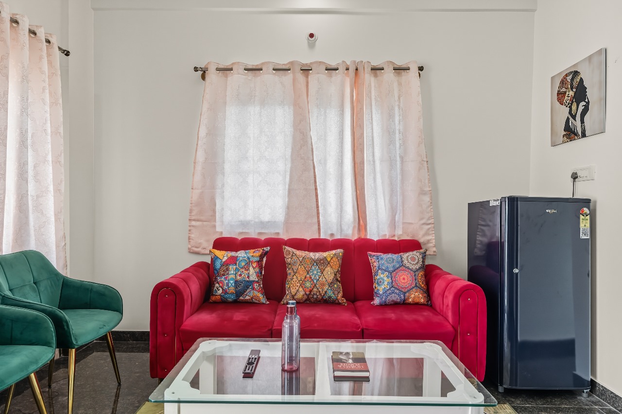 Enjoy a stylish experience at this centrally-located stay near Koramangala club. This 1BHK 550 SFT (bedroom, hall, kitchen) apartment is ideal for couples, families, providing a comfortable and well-appointed home away from home with lift. It has also been noted as being particularly suitable for those seeking medical treatment, as it is close to several major hospitals, including St. John’s Hospital, NIMHANS, Manipal Hospital, and St. Philomena’s Hospital. We have multiple units available